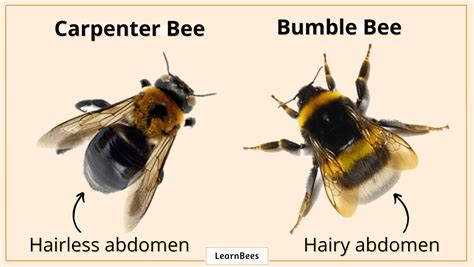 However, carpenters bees and bumblebees are different bee species with slight physical differences. For example, carpenter bees have a smooth and shiny abdomen with little to no fuzz on it. Both types of bees are large and can have similar coloring.