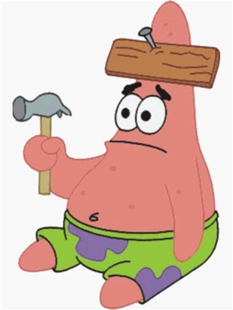 Patrick Wood On Head. Spongebob with pizza parachute sticker. Krabs fall in love sticker.